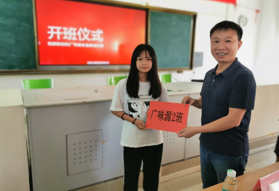 廣味源公司許業(yè)??偨?jīng)理為校企合作的兩個班授班牌。