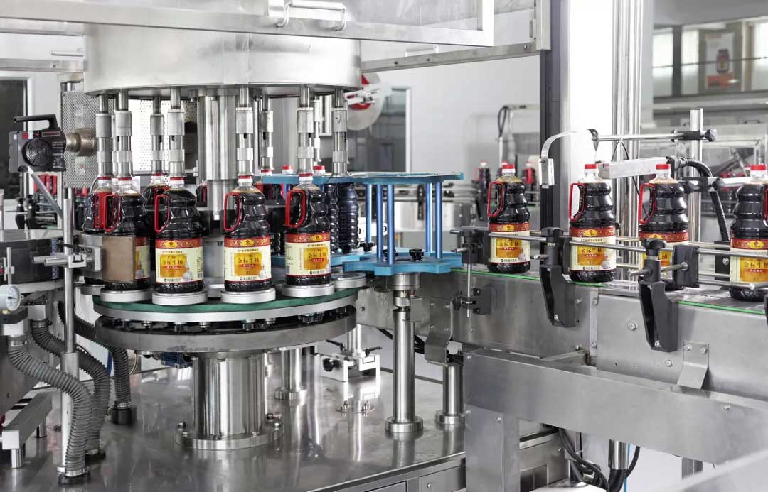 廣味源的醬油產(chǎn)品經(jīng)高溫滅菌灌裝后,進(jìn)行自動(dòng)化貼標(biāo)