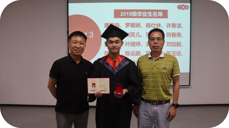 許總經(jīng)理、林主任為2019級畢業(yè)生代表頒發(fā)畢業(yè)證書及勛章