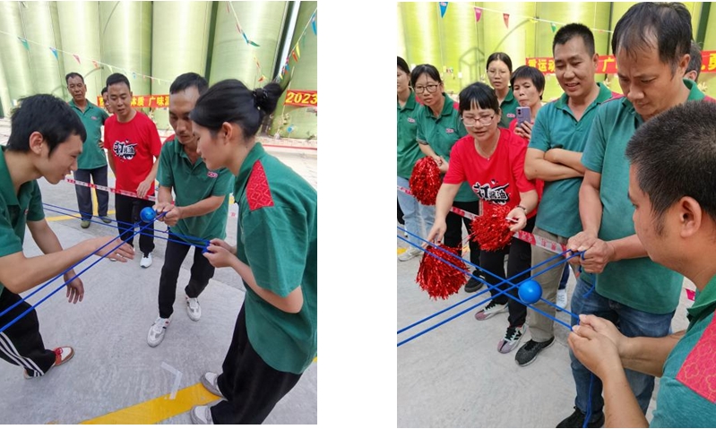 第五個(gè)項(xiàng)目:摸石頭過(guò)河。每名隊(duì)員手拿三塊磚頭過(guò)河,6名隊(duì)員接力完成,每人走10米。這個(gè)項(xiàng)目手腳的協(xié)調(diào)性要求很高,有些隊(duì)員為了不犯規(guī)加時(shí),用最簡(jiǎn)單的辦法三塊磚前后移動(dòng),也是一個(gè)非常棒的辦法,本項(xiàng)目在有條不紊的比賽中充分體現(xiàn)了廣味源人務(wù)實(shí)篤行,行穩(wěn)致遠(yuǎn)的合作態(tài)度。