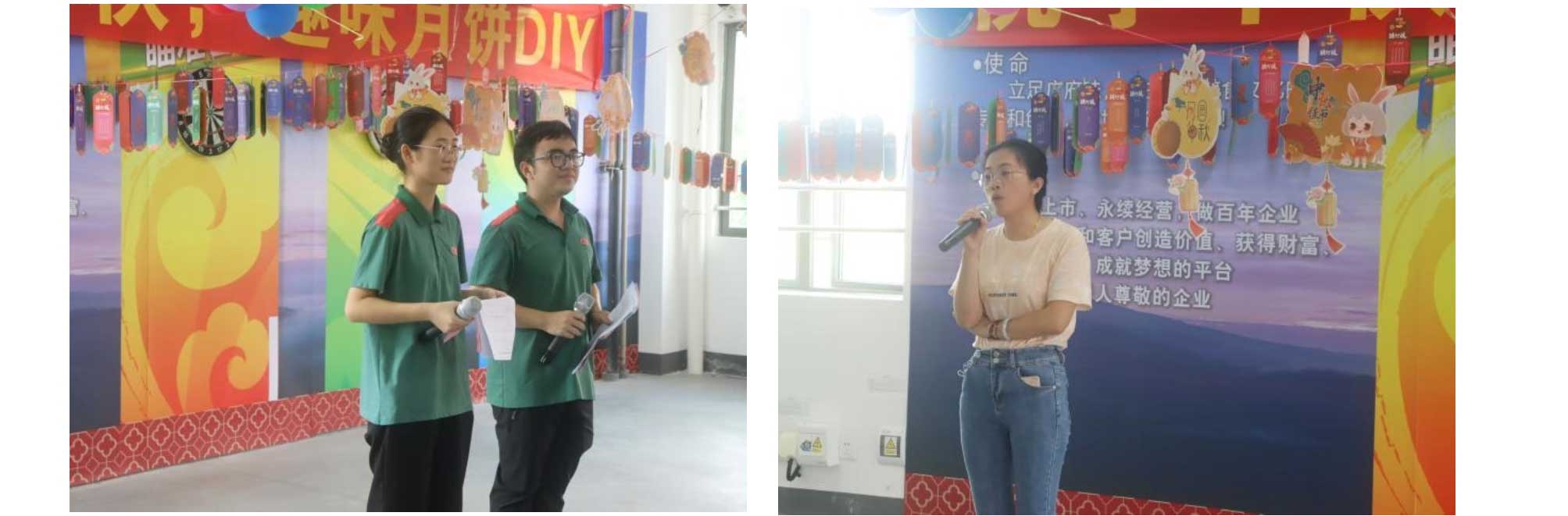 15:30分,喜悅的音樂(lè)如約響起,中秋游園活動(dòng)正式開(kāi)始,在主持人漆旺、陳玉瓊的介紹下,五支參賽隊(duì)喊出自己的口號(hào),為自己的團(tuán)隊(duì)們吶喊助威。在活動(dòng)開(kāi)始前由葉建國(guó)、李文宇、漆旺組團(tuán)的快樂(lè)合唱團(tuán)《但愿人長(zhǎng)久》獻(xiàn)上節(jié)日祝福。隨后行政部施華經(jīng)理對(duì)本次活動(dòng)做開(kāi)場(chǎng)致辭,提前祝福大家中秋節(jié)快樂(lè),施經(jīng)理強(qiáng)調(diào)這是我們第一次DIY月餅,希望大家把今天自己新手制作的月餅帶回去給家人一同分享,讓他們感受到不一樣的關(guān)懷,不一樣的溫暖,不一樣的愛(ài)。