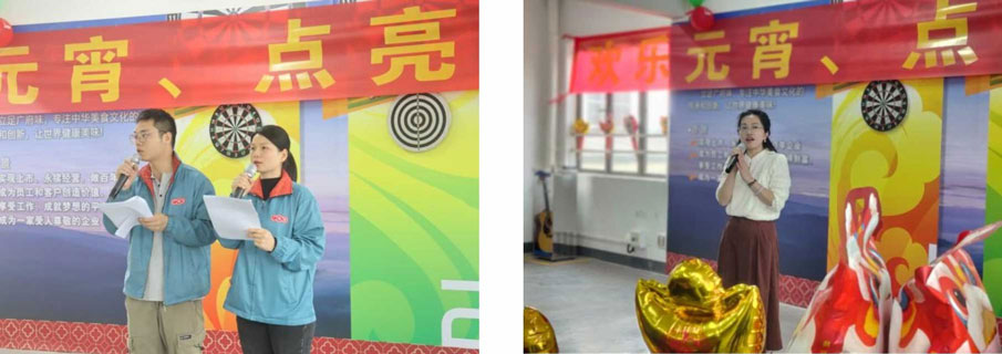 15:00,活動在溫馨的開場儀式中拉開帷幕,主持人宣布元宵節(jié)活動正式開始,行政部施華經(jīng)理作開場致詞,向全體員工送上節(jié)日祝福,瞬間點燃現(xiàn)場歡樂氛圍。施經(jīng)理在開場致辭中說,今天活動的主題是“歡樂元宵,點亮心愿”,元宵佳節(jié)享團圓,一碗湯圓福氣圓,飯?zhí)梦绮桶才帕塑浥聪闾鸬臏珗A,祝愿大家生活甜甜美美;在每個喜慶的節(jié)日里,我們都會相聚共同慶祝,這是廣味源的文化,今天是元宵佳節(jié),我們在這里以元宵的圓滿和甜蜜為寓意,點亮我們共同的心愿,祝愿公司的未來像滿月一樣光明,生意如萬家燈火一樣紅火,也祝愿所有員工家庭團團圓圓,甜甜美美。