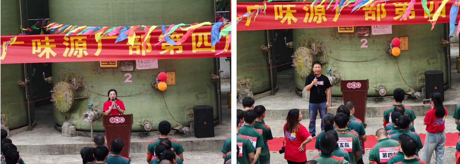 下午2點45分,行政部施華經(jīng)理上臺致辭,感謝公司領(lǐng)導(dǎo)及各部門長對本屆活動的大力支持,感謝全體工作人員對本屆運(yùn)動會的積極籌備,并向全體參賽隊員送上美好祝愿,希望大家在本次比賽中享受樂趣、賽出水平、賽出風(fēng)格。隨后,公司總經(jīng)理許業(yè)裕先生宣布廣味源廠部第四屆趣味運(yùn)動會正式開幕!許總在致辭中說到,趣味運(yùn)動會是企業(yè)文化建設(shè)的重要載體,既為員工提供了釋放壓力、增進(jìn)友誼的平臺,更能錘煉團(tuán)隊協(xié)作精神,希望大家在比賽中享受樂趣、展現(xiàn)風(fēng)采,將運(yùn)動中的拼搏精神轉(zhuǎn)化為工作中奮進(jìn)的動力。